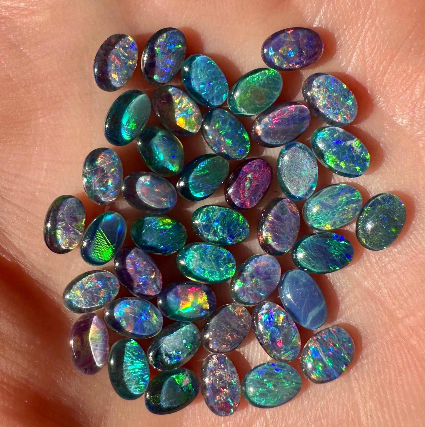 42 opal triplets showing off lovely multi colours. Perfect to make stud earrings, rings, cufflinks or pendants.