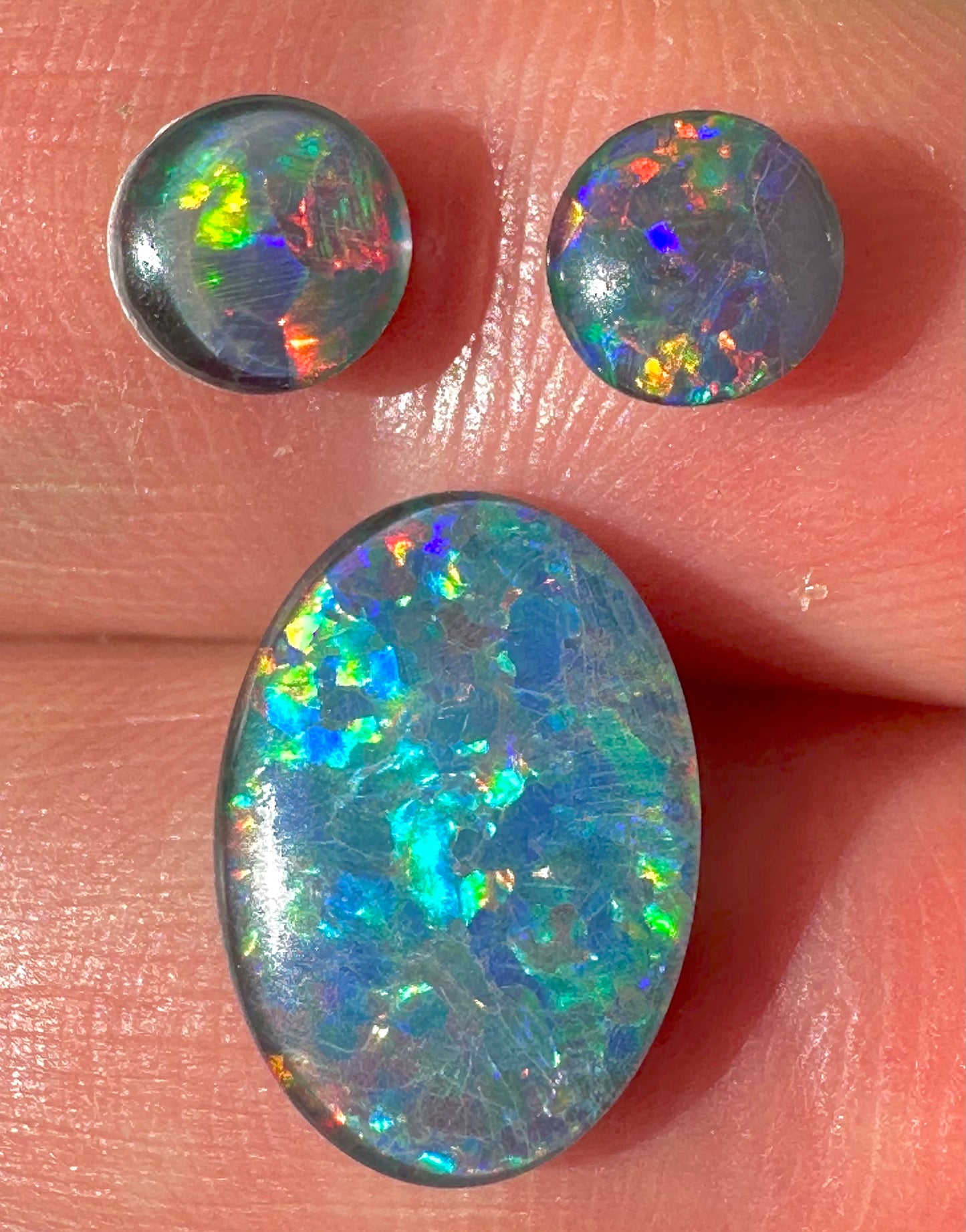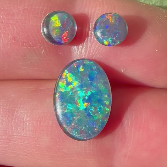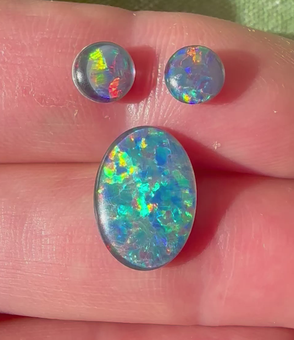 3 opal triplets showing off bright multi colours. Perfect to make stud earrings and ring.