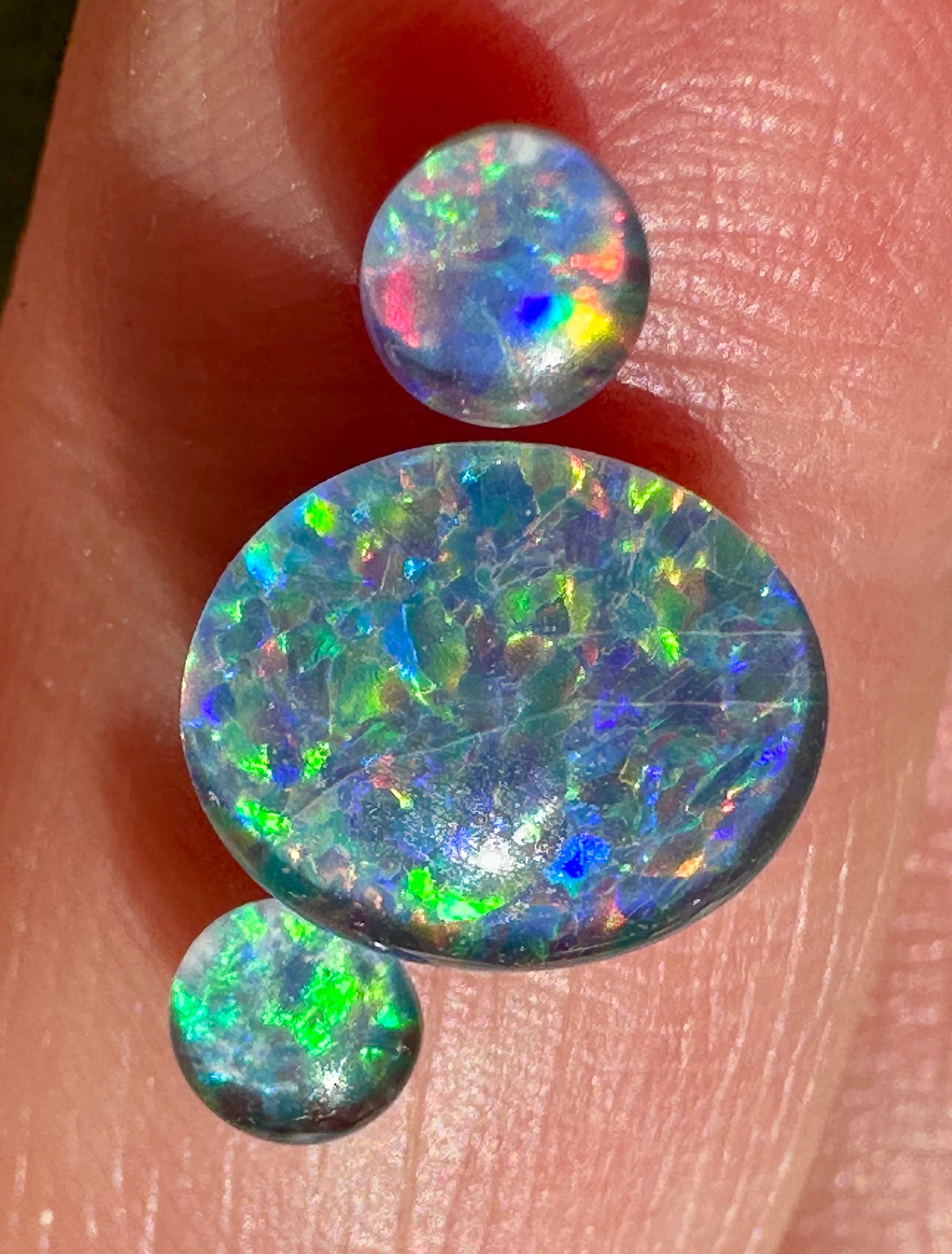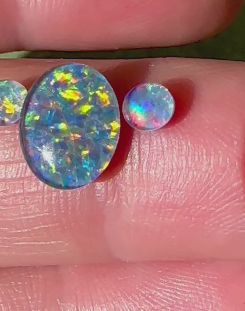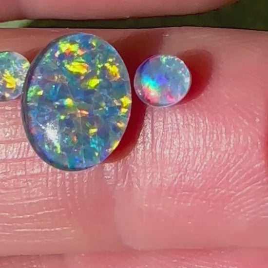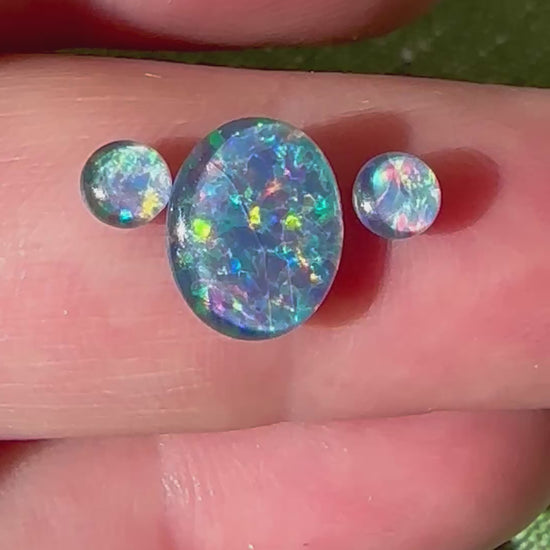 3 gorgeous opal triplets showing off beautiful blue's and green's. Perfect to make stud earrings and ring.